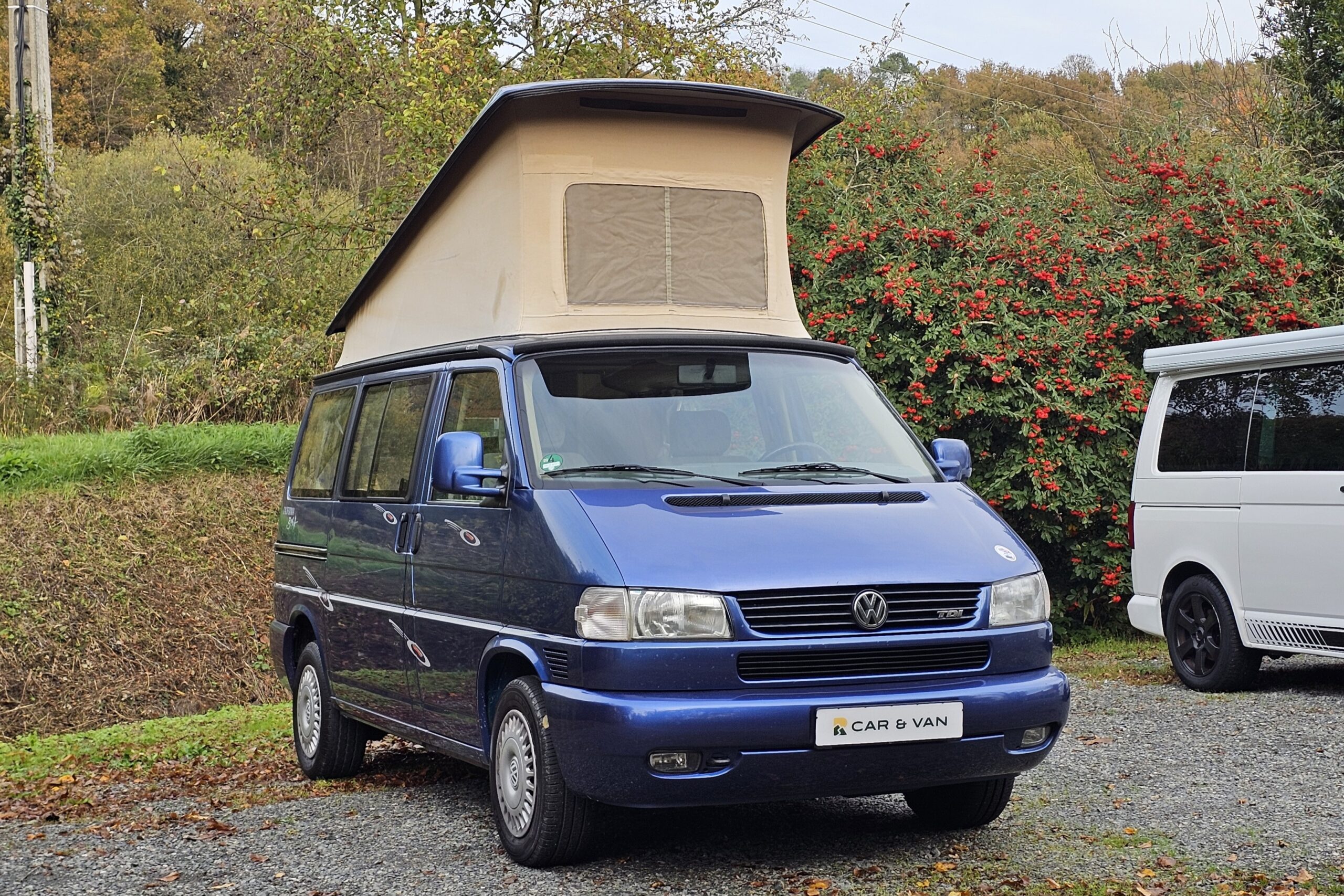 Volkswagen T4 California Beach 2.5, véritable référence du van aménagé, disponible en très bon état général avec 210 000 km.